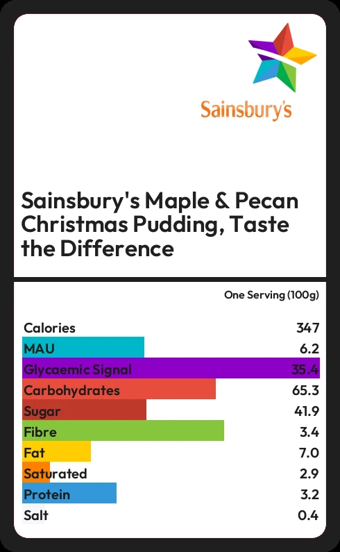Sainsbury's Maple & Pecan Christmas Pudding, Taste the Difference contains 347 calories in one Serving (100g).