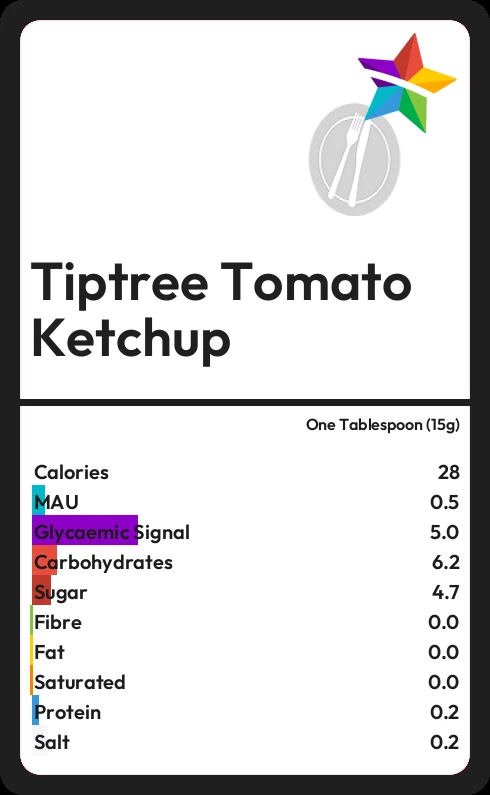 How much fat in Tiptree Tomato Ketchup?