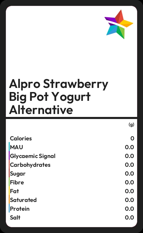 In 100g of Alpro Strawberry Big Pot Yogurt Alternative there are 1.9g of fat of which 0.3g are saturated.