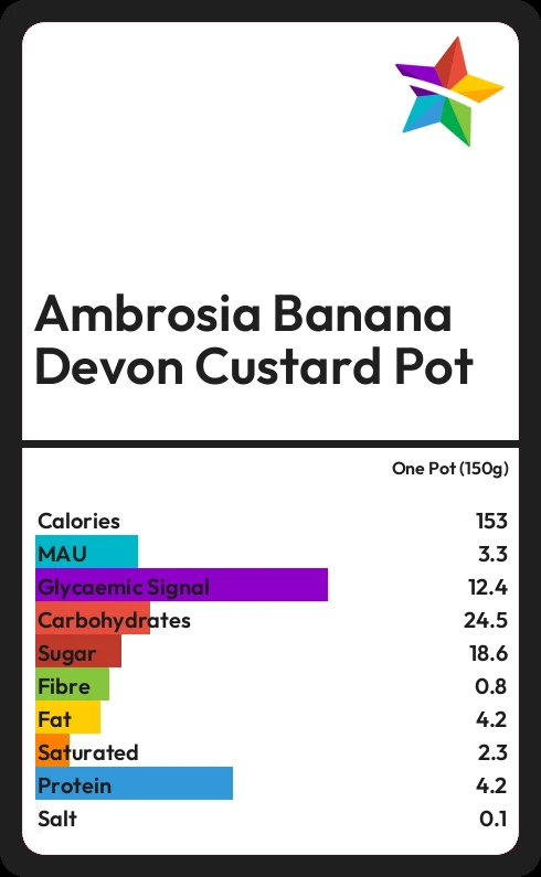 Ambrosia Banana Devon Custard Pot contains 153 calories in one Pot (150g).