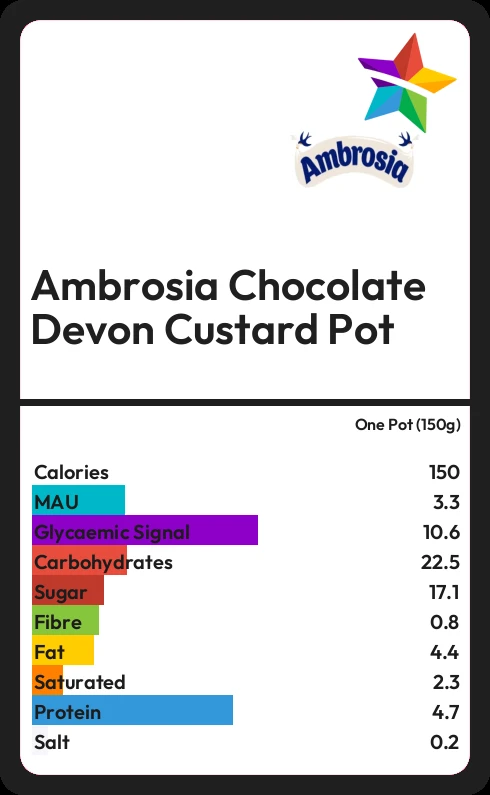 Ambrosia Chocolate Devon Custard Pot contains 150 calories in one Pot (150g).