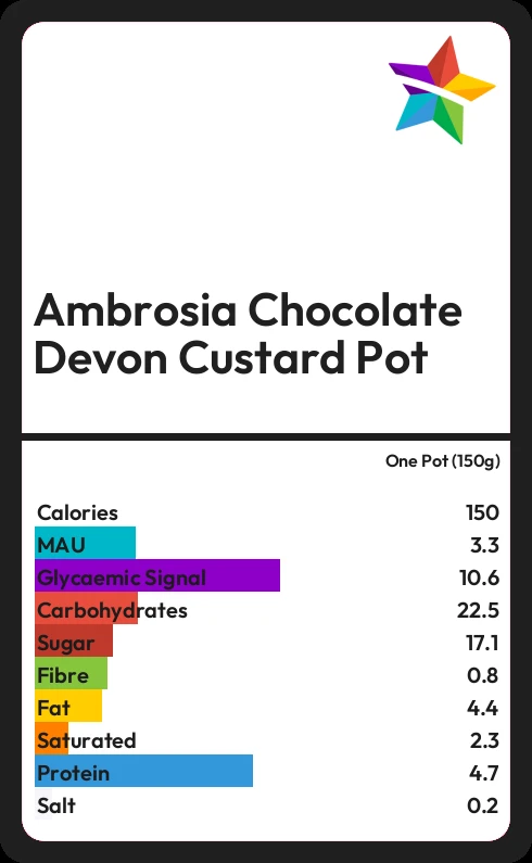 Ambrosia Chocolate Devon Custard Pot contains 150 calories in one Pot (150g).