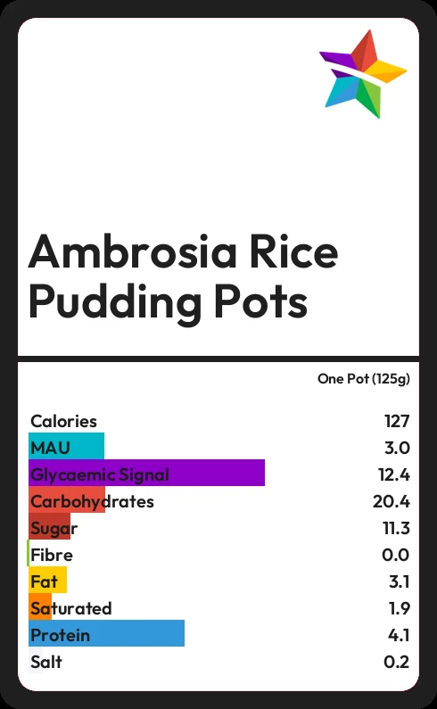 Ambrosia Rice Pudding Pots contains 127.5 calories in one Pot (125g).