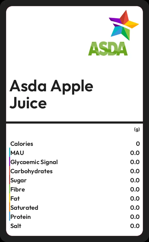 Asda Apple Juice contains 9.8g sugar in 100g - that is around 2 cubes of sugar.