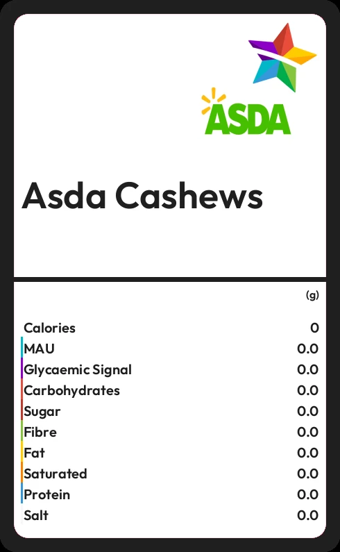 Asda Cashews contains 578 calories in 100g.