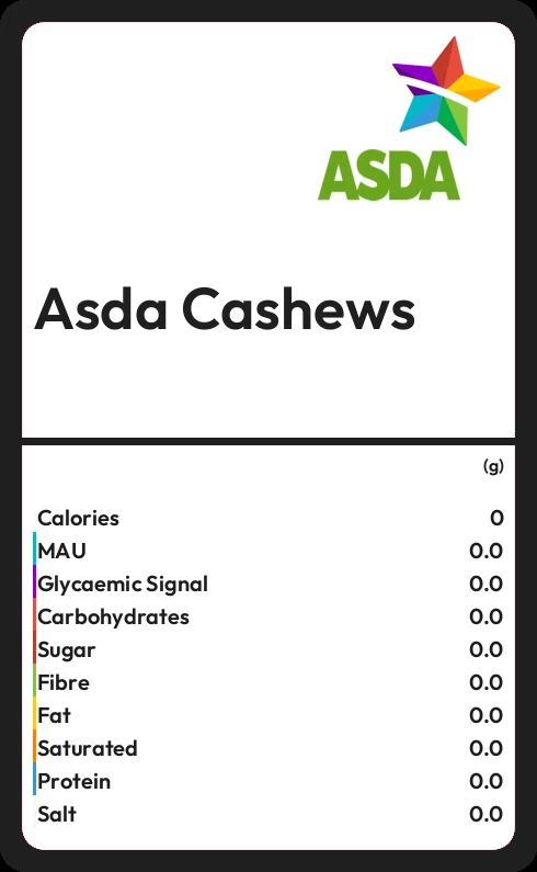 Asda Cashews contains 578 calories in 100g.
