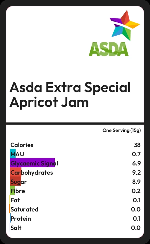 Asda Extra Special Apricot Jam contains 38 calories in one Serving (15g).