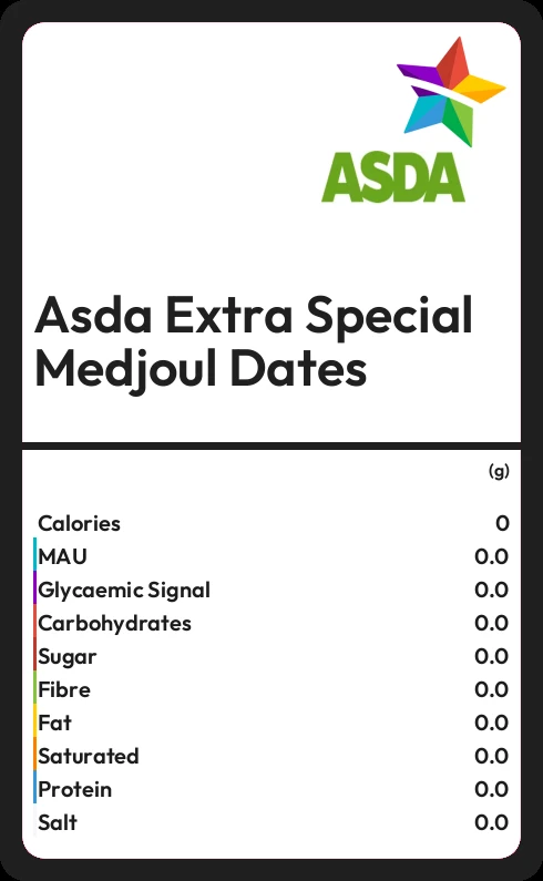 Asda Extra Special Medjoul Dates contains 312 calories in 100g.