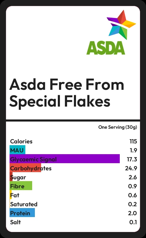 Asda Free From Special Flakes contains 114.6 calories in one Serving (30g).