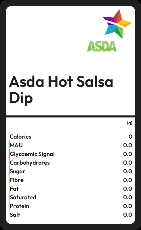 Asda Hot Salsa Dip contains 39 calories in 100g.