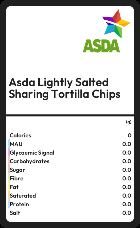 Asda Lightly Salted Sharing Tortilla Chips contains 1.5g sugar in 100g