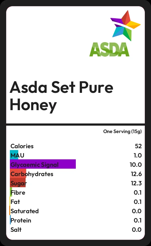 Asda Set Pure Honey contains 51.9 calories in one Serving (15g).