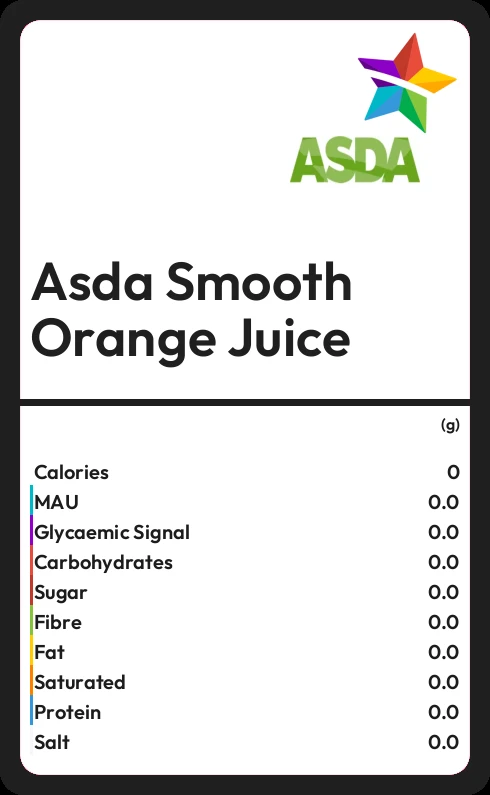 Asda Smooth Orange Juice contains 51 calories in 100g.