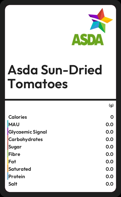Asda Sun-Dried Tomatoes contains 171 calories in 100g.
