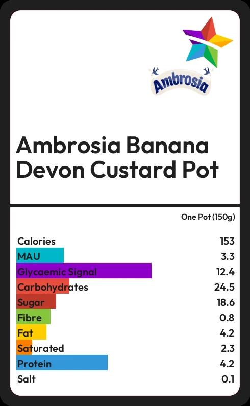 Ambrosia Banana Devon Custard Pot contains 153 calories in one Pot (150g).