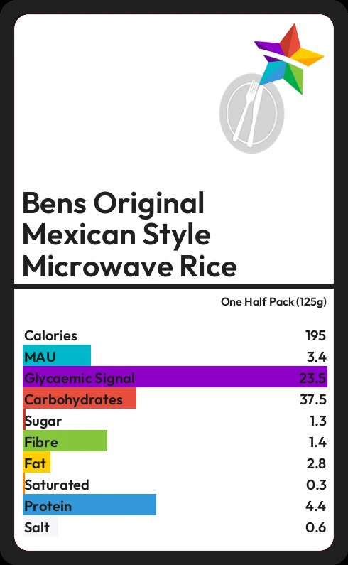 Bens Original Mexican Style Microwave Rice contains 1.3g sugar in one Half Pack (125g)