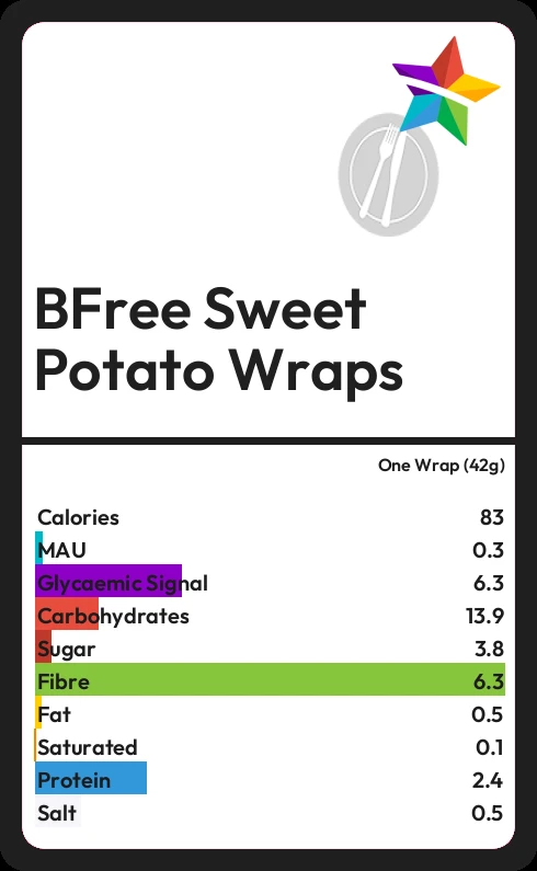 BFree Sweet Potato Wraps contains 3.8g sugar in one Wrap (42g) - that is around 1 cube of sugar.