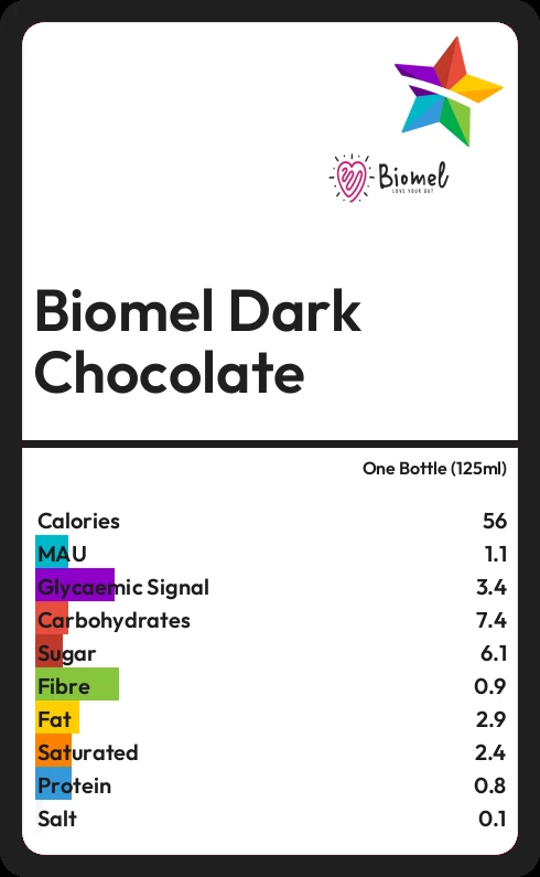 Biomel Dark Chocolate contains 56.3 calories in one Bottle (125ml).