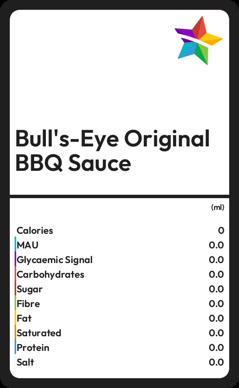 In 100ml of Bull's-Eye Original BBQ Sauce there are 0.2g of fat of which none are saturated.