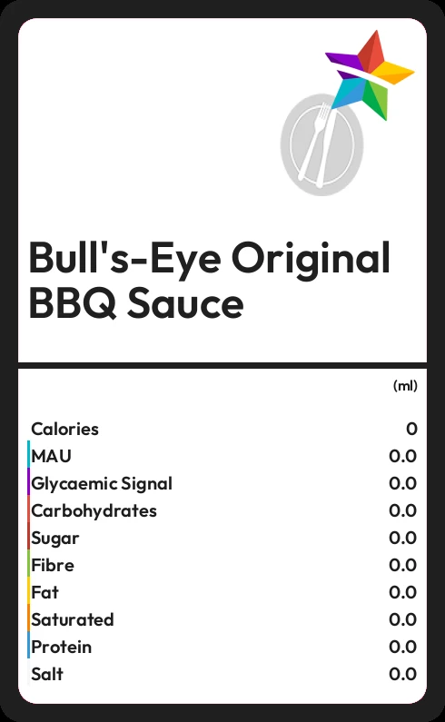 In 100ml of Bull's-Eye Original BBQ Sauce there are 0.2g of fat of which none are saturated.