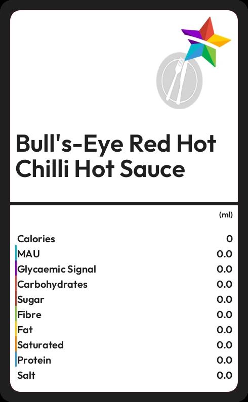 Bull's-Eye Red Hot Chilli Hot Sauce contains 142 calories in 100ml.