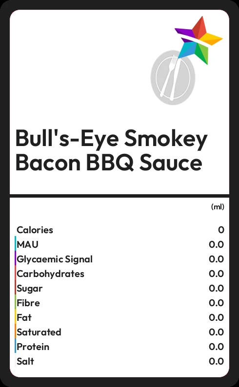 Bull's-Eye Smokey Bacon BBQ Sauce contains 157 calories in 100ml.
