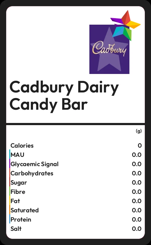 In 100g of Cadbury Dairy Candy Bar there are 26.5g of fat of which 16.0g are saturated.