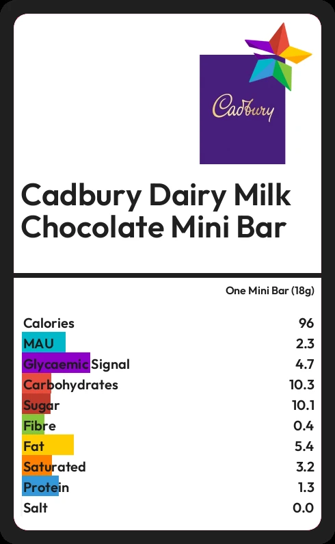 How much sugar in Cadbury Dairy Milk Chocolate Mini Bar?