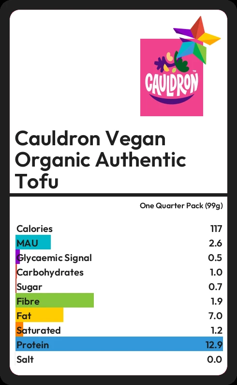 Cauldron Vegan Organic Authentic Tofu contains 0.7g sugar in one Quarter Pack (99g)