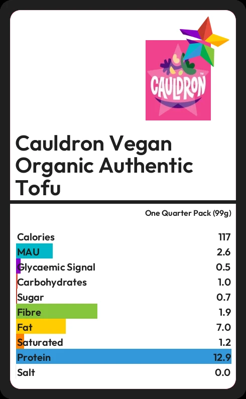 Cauldron Vegan Organic Authentic Tofu contains 0.7g sugar in one Quarter Pack (99g)