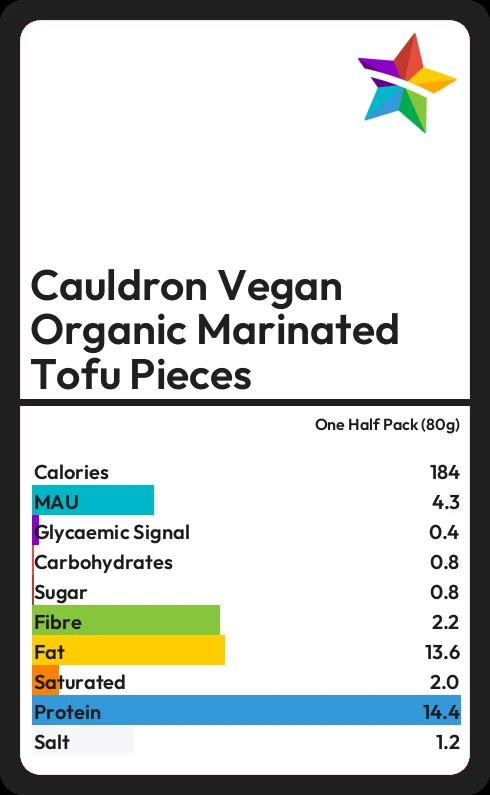 Cauldron Vegan Organic Marinated Tofu Pieces contains 184.8 calories in one Half Pack (80g).