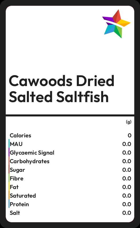 Cawoods Dried Salted Saltfish contains no sugar in 100g