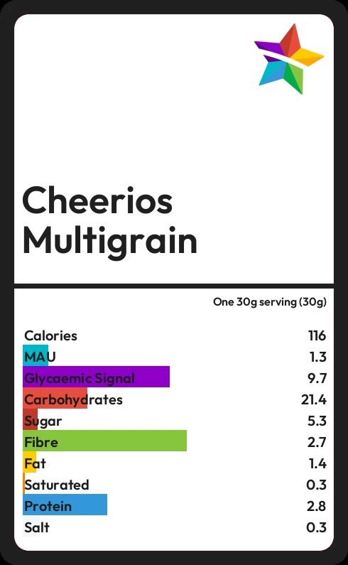 Cheerios Multigrain contains 5.3g sugar in one 30g serving (30g) - that is around 1 cube of sugar.