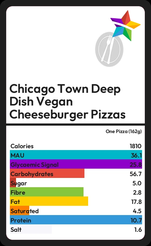 Chicago Town Deep Dish Vegan Cheeseburger Pizzas contains 1 calories in one Pizza (162g).