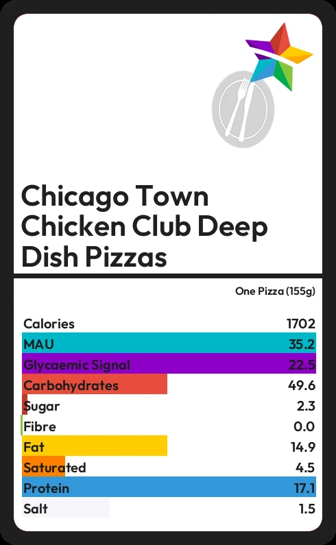 Chicago Town Chicken Club Deep Dish Pizzas contains 1 calories in one Pizza (155g).