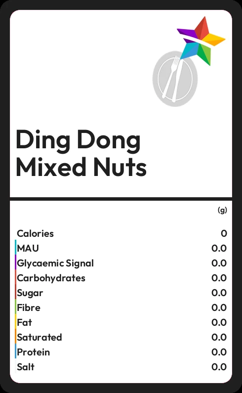 Ding Dong Mixed Nuts contains 10.0g sugar in 100g - that is around 3 cubes of sugar.