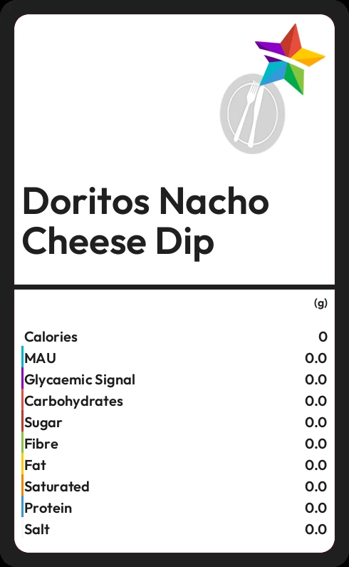 Doritos Nacho Cheese Dip contains 1.3g sugar in 40g