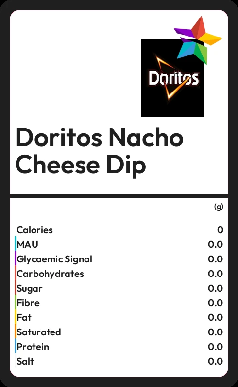 Doritos Nacho Cheese Dip contains 1.3g sugar in 40g