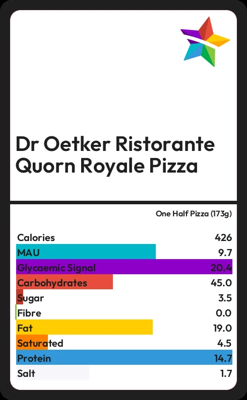 Dr Oetker Ristorante Quorn Royale Pizza contains 427.3 calories in one Half Pizza (173g).