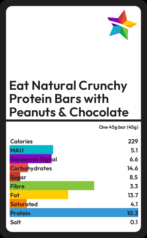 Eat Natural Crunchy Protein Bars with Peanuts & Chocolate contains 228.6 calories in one 45g bar (45g).