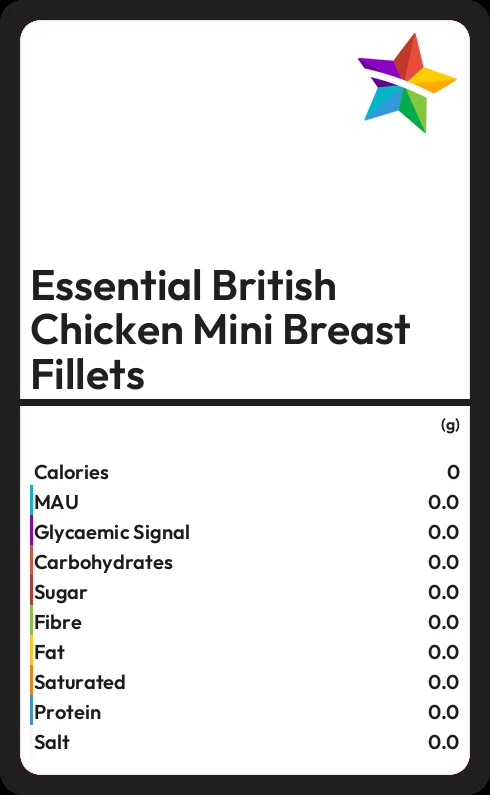 Essential British Chicken Mini Breast Fillets contains no sugar in 100g