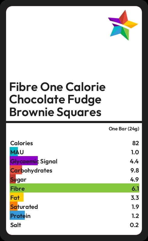 Fibre One Calorie Chocolate Fudge Brownie Squares contains 82.3 calories in one Bar (24g).