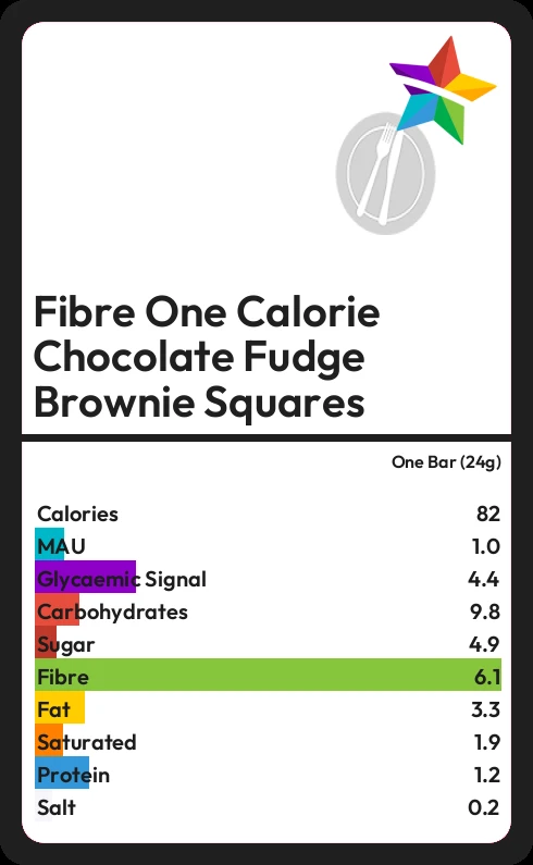 Fibre One Calorie Chocolate Fudge Brownie Squares contains 82.3 calories in one Bar (24g).