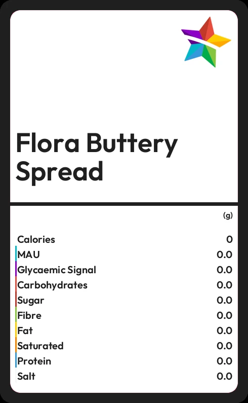 Flora Buttery Spread contains 0.6g sugar in 100g