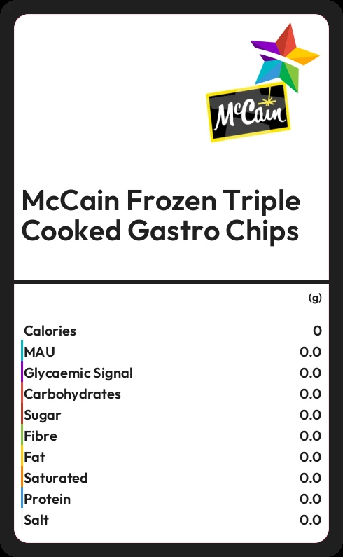 McCain Frozen Triple Cooked Gastro Chips contains 0.5g sugar in 100g