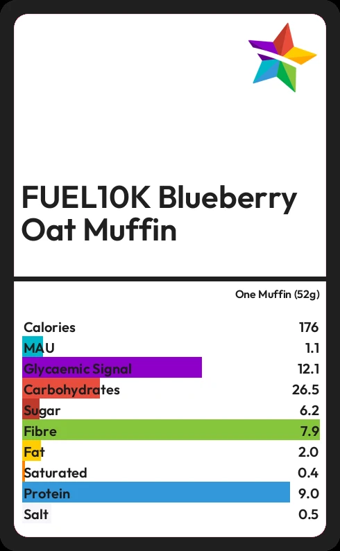 FUEL10K Blueberry Oat Muffin contains 175.8 calories in one Muffin (52g).