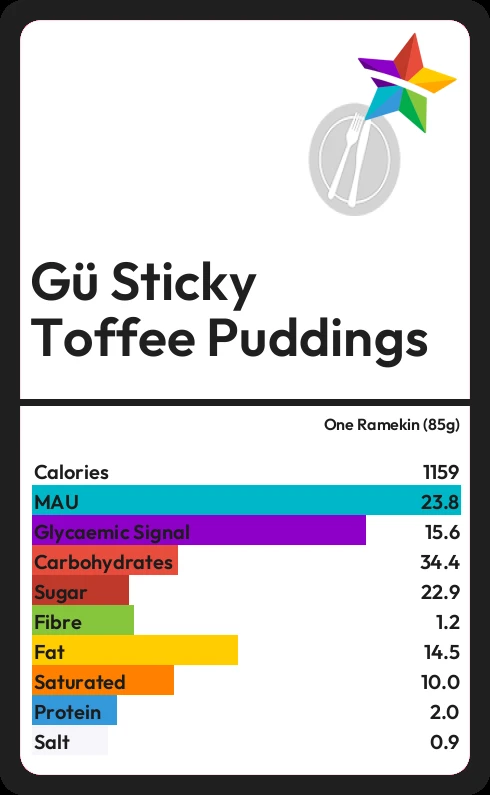 Gü Sticky Toffee Puddings contains 1 calories in one Ramekin (85g).