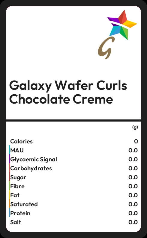Galaxy Wafer Curls Chocolate Creme contains 503 calories in 100g.