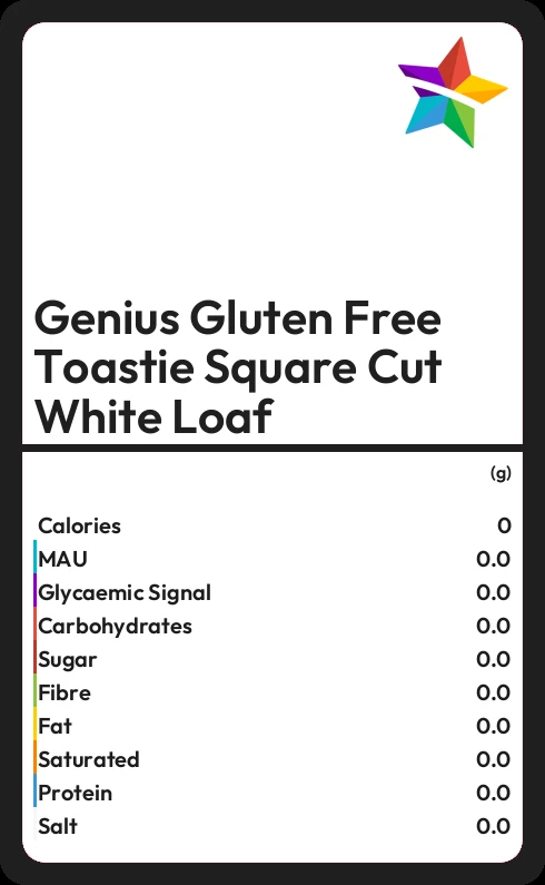 Genius Gluten Free Toastie Square Cut White Loaf contains 258 calories in 100g.