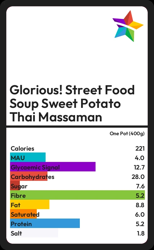 How many calories in Glorious! Street Food Soup Sweet Potato Thai Massaman?